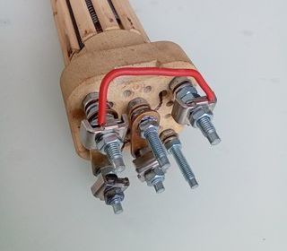 Résistance stéatite tout courant 2100W longueur 420mm Embase 60mm x 60mm Déjà montée mais le chauffe eau ayant des fuites, j'ai du acheter un chauffe eau neuf. Schéma de monta