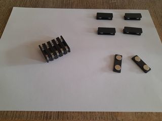 Lot de 10 aimants doubles, puissants, couleur argentée et noire, forme rectangulaire pour la plaque et coins arrondis pour l'autre élément, dimensions totales : 3,4 cm x 1,2 cm