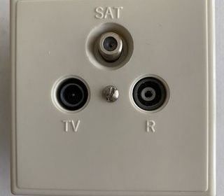 PRISE TVT/FM/SAT TONNA ref 372507 Plastron avant en très bon état,bloc PRISE TVT/FM/SAT en très bon état par contre passage des vis cassées voir photos , le serrage se fait par