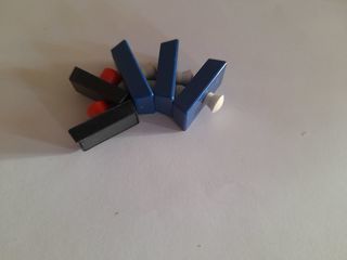 Lot de 5 aimants bouton, 3 bleus à bouton blanc, 3,0 cm x 1,2 cm x 1,2 cm, + 2 aimants noirs à bouton rouge, 2,2 cm x 1,1 cm x 1,2 cm. Pour tableaux blancs, réfrigérateurs