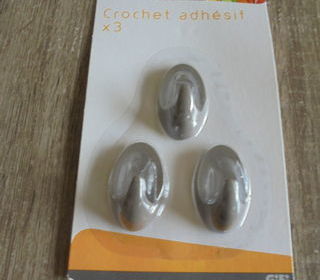 Lot de 3 crochets, adhésifs, de couleur marron, à coller partout : cuisine, salle de bain, toilettes, dans un placard. Très pratiques. Dimensions : 4,5 cm x 2, 5 cm. Excell