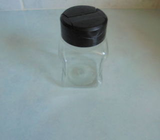 Flacons de rangement en plastique transparent, avec bouchons noirs à double ouverture, dimensions : hauteur : 8 cm, base : 4 cm x 4 cm. Ces flacons sont parfaits pour ranger