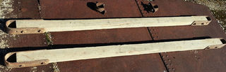 L'ensemble du lot en bon état, stocké à l'abri, vendu cause cessation d'activité comprend : _ Deux traverses en bois d'une longueur totale de 2, 04 m x 7,5 cm x 6 cm. Elles ont à