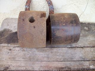 Cède ces deux poulies, l'une circonférence de 40cm, la deuxième de 35 cm, axes, 2,5cm
