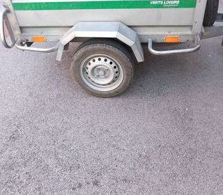 Remorque à benne basculante, avec bâche plate , roue de secours, rampes de chargement ( pour transport motoculteur, tondeuse ... )ridelles rabattables avant et arrière, plancher an