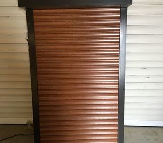 Je vends ce volet roulant électrique avec finition bois et encadrement noir. Parfait pour sécuriser et isoler votre fenêtre avec style et confort. - largeur 0.80 hauteur 1.32 + co