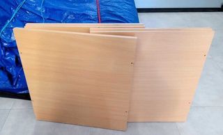 Planches en bois mélaniné, coloris bois clair. Peut servir pour 1 dressing, l'intérieur d'une armoire ou pour faire des étagères. Le lot comprend : 4 planches 97x48,5 cm 5 pla