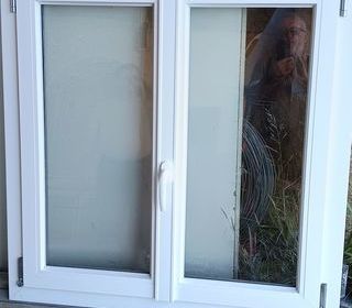 Châssis Aluminium de 100cm/102cm, deux vantaux dont un en oscillo-battant épaisseur 75mm Double vitrage Matériel d'exposition, neuf. Avec feuillure de 4 cm . 4 élément sont