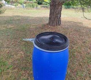 bidons bleus avec couvercle 130 litres en bon état