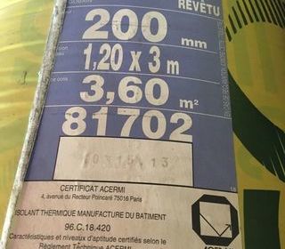 1 Rouleau de laine de verre marque ISOVER St GOBAIN NEUFS ROULEAUX 1.20M x3.00M X200mm résistance thermique R 5.50 revêtu de papier Kraft Prix du rouleau 45€ venir cherch