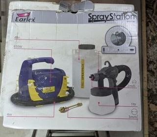Station de Peinture Basse Pression Earlex 3900 (600w). Accessoires: Tuyaux, Réservoirs (2), Harnais, Buses, Enlèvement sur place.