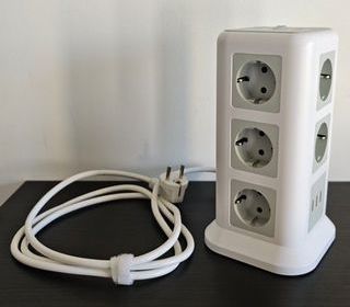Tour multiprise 11 prises 3 USB (4A2C) Interrupteur au-dessus 2500 W Pour bureau et maison Longueur câble 2 m Dimensions Hauteur 22 cm Carre base 12 cm Carre haut 9.5 cm