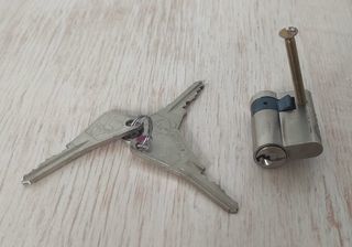 Barillet Vachette 3 clés Barillet simple Longueur 39.7 mm Hauteur 32.8 mm Distance entre le trou de la clé et le panneton 24.6 mm Distance entre le trou de la clé et l'axe de