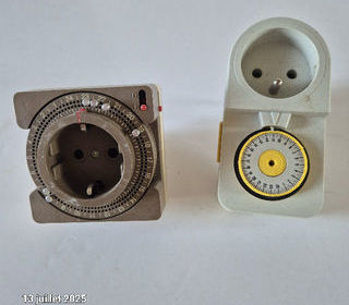 Lot de 2 prises programmateurs ou minuteurs, d'origine France et Allemagne Les 2 minuteurs qui sont en parfait état de fonctionnement vendu en