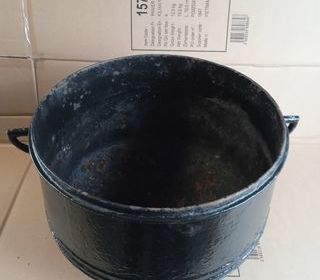 Vieux chaudron en fonte ,qu' on accrochait en haut des cheminées au 18 ème siècle.
