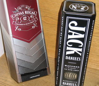 2 BOITES DE WHISKY EN MÉTAL Sérigraphie embouti CHIVAS+ JACK DANIELS RÉPONSE UNIQUEMENT PAR TEL Frais de port et d'emballage 5€ pour la France VISIBLE A MARSEILLE METRO ST JU