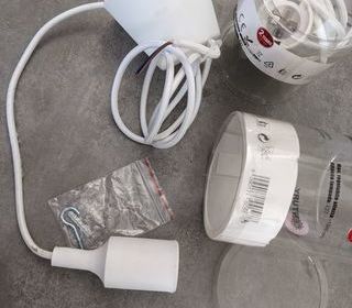 1 Suspension BLANC lustre plafonnier lampe NEUF JAMAIS UTILISE. douille + cable + pavillon. Voir photo. Frais de port et d'emballage 5 € pour la France VISIBLE À MARSEILLE MÉTRO