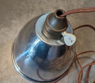 1 Abat jour tulipe en aluminium poli H 11 cm ø13 cm trou 28 mm. Avec douille à interrupteur rotatif. en très bon état. voir photos. Lampe Gras Ravel ou autre design industriel. F