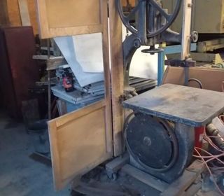Vends scie à ruban châssis fonte Volant Diam.600 mm 3 Lames Manque poulie sur moteur électrique Pas d'envoi à venir chercher sur place