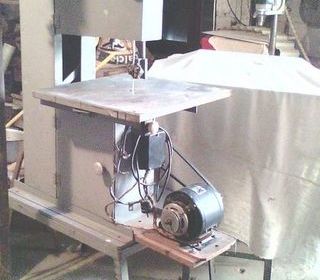 Scie à ruban: Table : 49 cm x 49 cm; Hauteur: 97 cm. Moteur 1/4CV Asynchrone, 220 volts, entraînement par courroie trapézoïdale. Lame: 2,2 cm avec tendeur. Lames en plus.