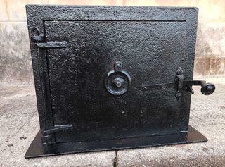 Vends ancienne porte de four en fonte avec montant pour encastrer dans un mur Bon état