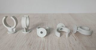 9 clips de fixation en PVC gris NEUFS ? JAMAIS UTILISES Vendu uniquement en lot de 9 -> 5 € le lot Dimensions Hauteur 46 mm Largeur 38 mm Epaisseur 11.5 mm Diamètre câble