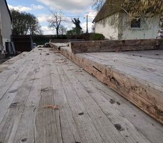 19 PLATEAUX LAMELLE COLLE EN BON ETAT. LONGUEUR 5M60 EPAISSEUR 8 CM LARGEUR 65 CM