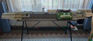 Machine permettant de réaliser des tricots simples, chaussettes, motifs irlandais, jacquart avec matériel complémentaire. Possibilité 4 couleurs, montage tricot facile sans poids