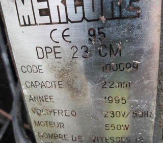 Perceuse à colonne Mercure d'établie. DPE 23 CM année 1995. BON ETAT.Code 100099 - très peu servi fournie avec s... ... Moteur 550 W. capacité 22mm. 220v & boîte démultiplication à