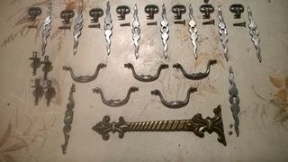 Vends 1 lot d' anciennes poignées et déco pour meubles. Poignées en laiton/acier et inox. Je vends le tout pour 16 euros. Contact par mail ou par téléphone.