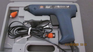 COFFRET PISTOLET A COLLE ECECTRIQUE TPK CHAUFFANT A 178 ° 25 / 78 WATTS 220 / 240 V PLUS BOÏTE DE 32 BATONNETS DE COLLE TRES BON ETAT DE FONCTIONNEMENT TRES BON ETAT