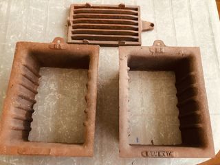 Accéssoires pour cuisinière en fonte ; 2 Pot de cuisinière à charbon marque HAINEAUX des années 50 neuf plus une grille en fonte fabrication Ets: Devette Les pots 27,5/21,5 ext.