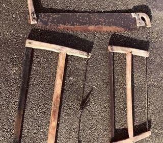 scie à bois en long à utiliser à deux (ancienne bûcheron) et 2 scies à buches 12 euros pièce ou 30 les trois