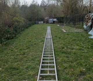 Rouleau de jardin où pelouse, 1m37 longueur du manche, 88cm longueur du rouleau ,34 cm de diamètre du rouleau et une pelle pour nettoyer les drains, Longueur du manche 3m15