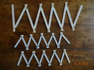 Particulier vend 3 double-mètre de mesure en excellent état, quasi neuf. Lot inséparable. 1 x 2 m double faces en bois, largeur 1,60 cm, peinture époxy blanc. 2 x 1m doubles f