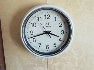 Bonjour, horloge murale grand format. État neuf, diamètre 24cm, épaisseur 6,5cm, poids avec pile 590gr. Silencieuse, très précise. Pour cuisine, salle de bain, couloir, séjour, etc