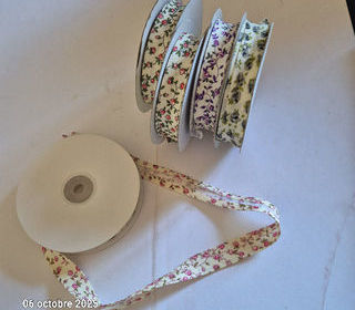 Lot de 5 x 25 m m de biais de couleurs différentes avec des motifs fleurs 2 cm de large, Couture, ameublement, habillement, loisirs soit 125 m de long 50% polye
