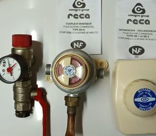 lot de plombrie : robinet détendeur déclencheur Butane classe 1 - inverseur automatique butane avec inverseur de réserve - manomètre de pression et autres pèces - ( A prendre sur p