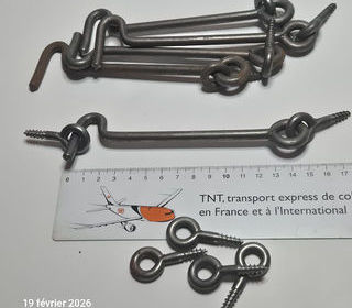 Lot de 5 crochets loquets très anciens pour volets, porte, et les pitons Ils sont fait dans un très bon acier ancien, et très épais , difficile à tordre Dime