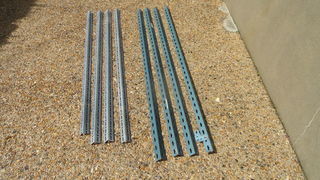 Cornières perforées pour étagères - Epaisseur : 3,5 cm X 3,5 cm Longueurs : - 4 cornières de 159,5 cm - 1 cornière de 150,9 cm - 2 cornières de 148,7 cm -