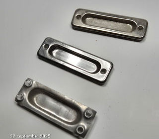 Lot de 2 poignées année 60-70 pour porte coulissante. Etat neuf. Dimension : 2.5 cm x 8,5 cm J'offre la troisième qui a déjà servi ...