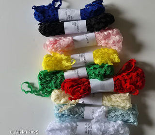 Serpentine - Croquet 7 mm - lot de 9 couleurs différentes soit 90 mètres Appelé croquet ou Zig Zag ce ruban 100 % polyester en forme de vagues est un inco