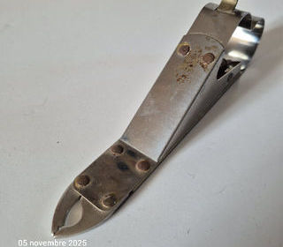 Pince manuelle de préhension et de maintien , La Microspince réalisée en feuille de métal pliée et rivetée. Brevet N° 74-25595. Déposant : Paul Auzou La mâcho