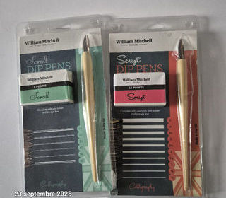 2 coffrets cadeaux de calligraphie scroll et script avec plusieurs plumes et porte plume le set scroll possède 6 plumes de largeur différentes et un por