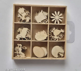 Lot de 45 sujets en bois sur le thème de la ferme, lapin, cochon, mouton, oeuf, coq Ils peuvent se coller, se peindre, et se pos