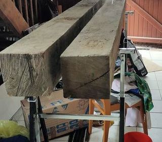 2 poutres en chêne longueur 2,80 m section 0.16 x 016. Ces poutres proviennent d' une cessation d'activité d'un charpentier en 1980, stockées depuis dans le grenier. Ces poutres
