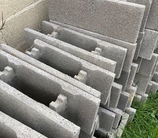 Lot de parpaings à bancher empilés. 20x20x50 Lot de 270 pièces
