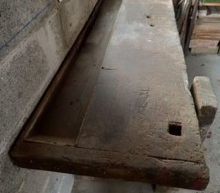 ETABLI DE PROFESSIONNEL.LONG. 2.40 M LARG. 0.58 M DONT UNE RAINURE DE 0.18 M SUR TOUTE LA LONGUEUR EQUIPE DE 2 ETAUX DONT 1 INTEGRE ET LE SECOND EN FER, TRES PUISSANT, AJOU