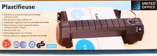 Plastifieuse neuve United Office à commande facile pour le laminage à chaud et à froid 350W, format maximal A4 Guide-papier réglable et insertion automatique de la feuille Préch