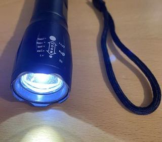 5 modes différents accessibles par un double-clic : 3 niveaux de puissance + stroboscope + SOS Largeur du champ modifiable Fonctionne avec 3 piles AAA Excellent état Tr